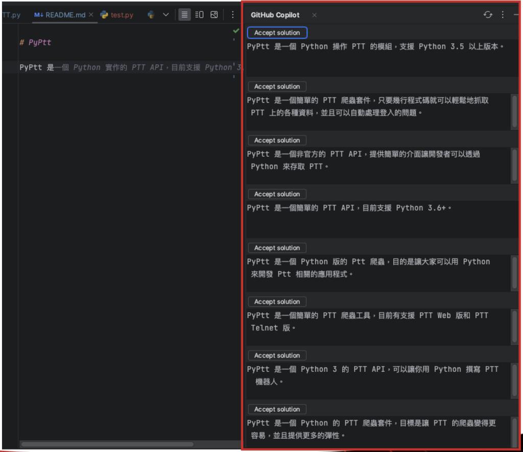 下圖就是我們使用 GitHub Copilot 來產生文件的範例。