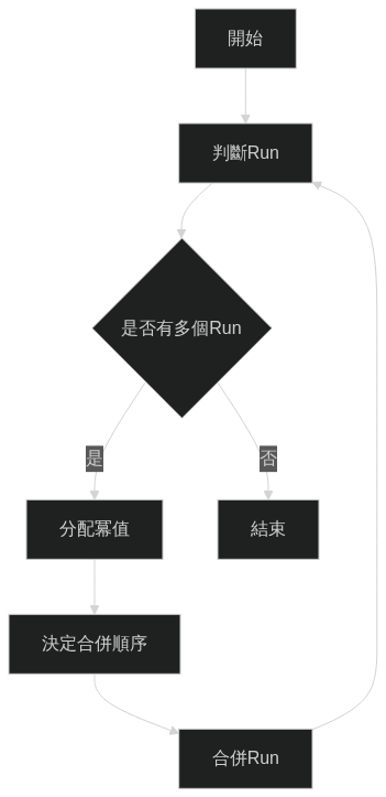 以下圖示展示了 PowerSort 演算法的整體結構和主要步驟: